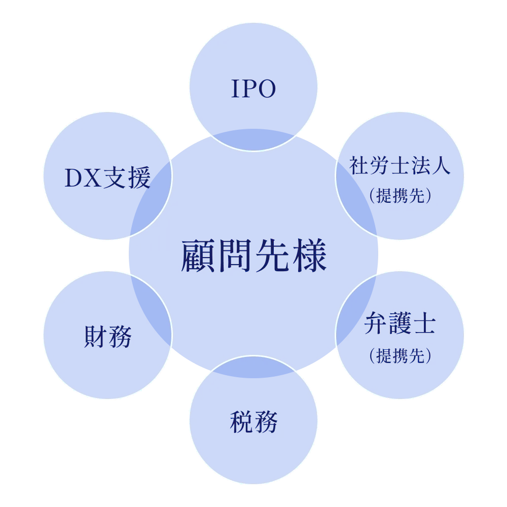 代表の児玉は上場企業の役員も務めており、IPOも視野に入れた税務・財務のご支援も可能です。